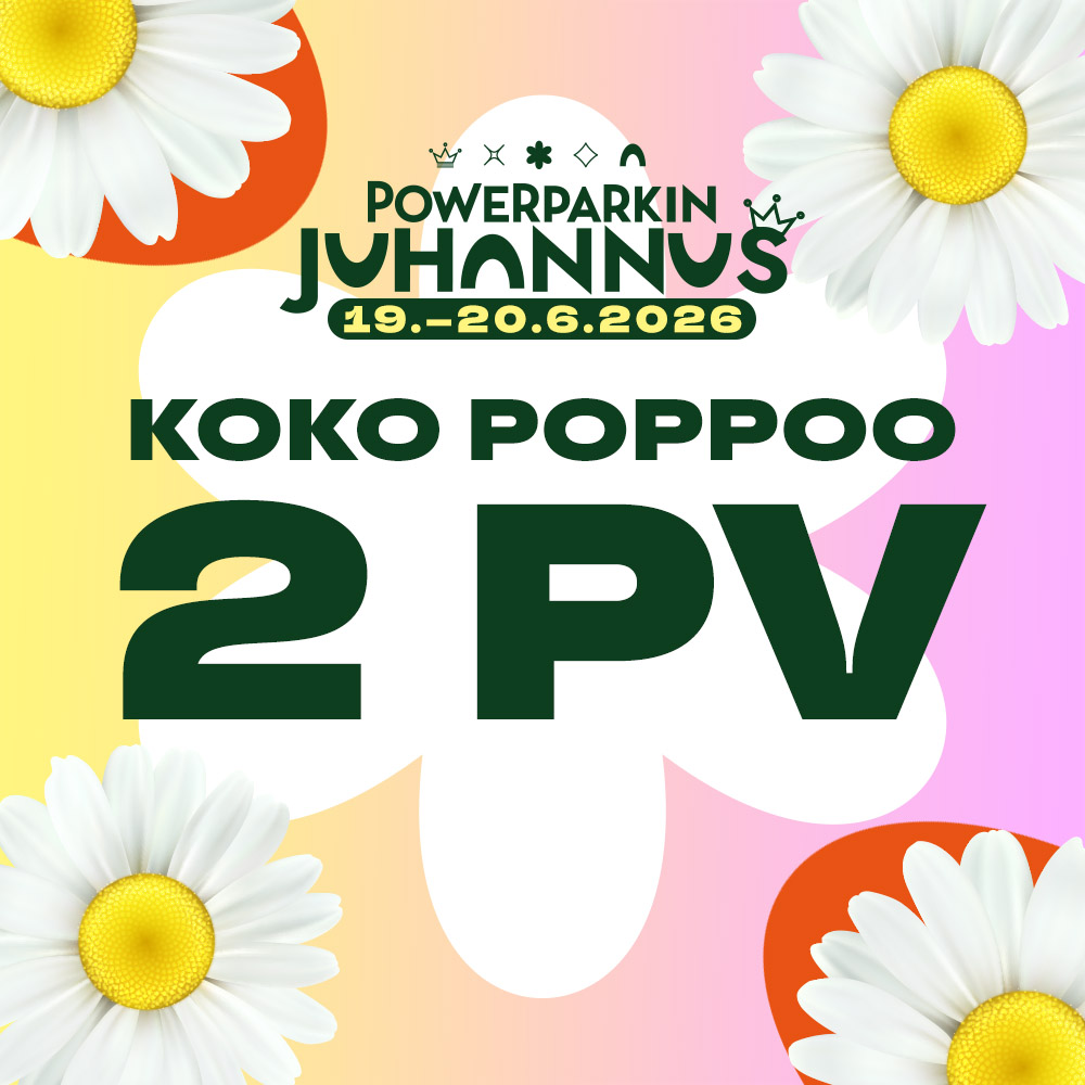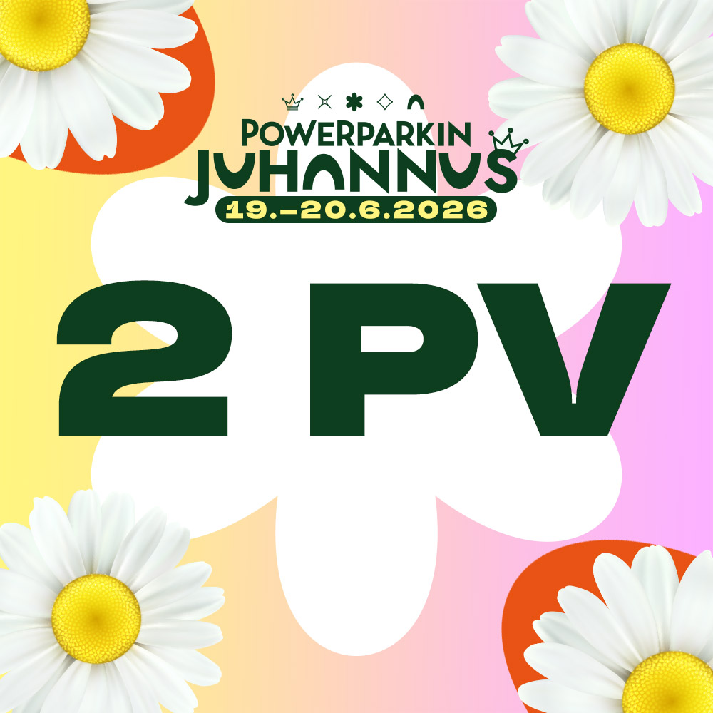 Tämä paketti sisältää 2 kpl kahden päivän lippua PowerParkin Juhannukseen. Liput oikeuttavat sisäänpääsyn kahdelle PowerParkin juhannuksen iltatapahtumaan perjantaina 19.6. sekä lauantaina 20.6.2026.